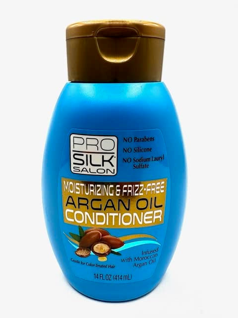 Pro Silk Salon Moisturizing & Frizz-Free Argan Conditioner is a premium hair care product designed to deeply moisturize and nourish your hair. Infused with Argan oil, it effectively controls frizz and flyaways, leaving your hair silky, smooth, and manageable. This conditioner also reduces tangles and breakage while restoring your hair's natural shine and vitality, making it a must-have for anyone seeking professional-quality results at home.